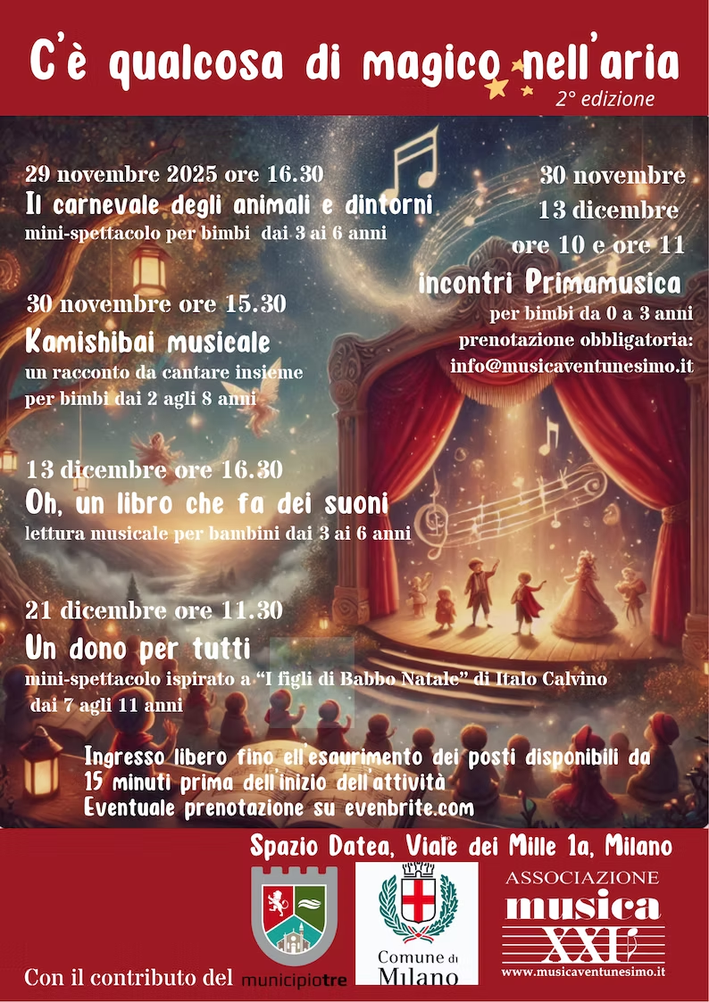 Dal 29 novembre al 21 dicembre vi aspettiamo allo Spazio Datea V.le dei Mille 1 a Milano per vivere insieme momenti unici di creatività e fantasia.